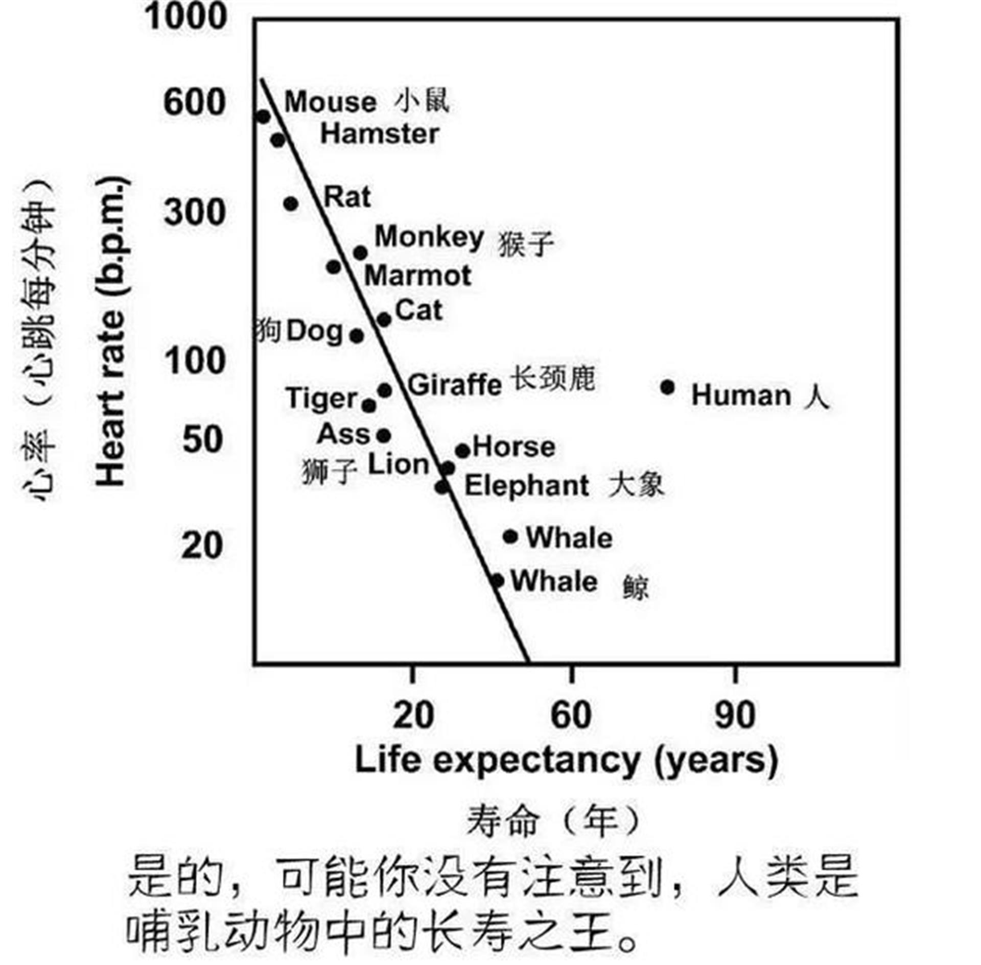 首先,有一个大家从小在学校课本上就知道的生物学常识:对于恒温动物来说,体型越大一般寿命也会越长,心跳越慢。